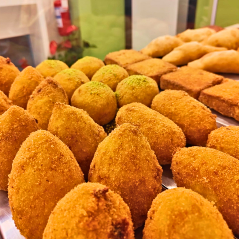 La rosticceria del Panificio Le Bontà del Mastro a Milazzo è un trionfo di sapori tipici. Arancini dorati, pidoni caldi e fragranti, calzoni ripieni, pizzette e tante altre bontà salate, perfette per ogni momento della giornata. Tutti i nostri rustici sono preparati artigianalmente, con ricette tradizionali e ingredienti freschi. Che sia un pranzo veloce, una festa o una cena in famiglia, da noi trovi sempre il gusto autentico della cucina siciliana.